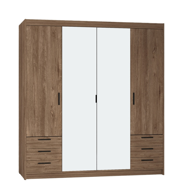 Szafka wizualnie jest ładna, jednak płyty są przeciętnej jakości. Kupiłam 2 szafy i w każdej paczce brakowało po 1 drążku do zawieszania ubrań. Kontakt ze sklepem fantastyczny i błyskawicznie odpowiedziano mi, że w przeciągu 2 tygodni otrzymam brakujące elementy. Szufladki nie nadają się do przechowywania ciężkich przedmiotów, typu teczki z dokumentami, czy papier do drukarki, bo konstrukcja jest licha i od ciężaru dno nie wytrzyma, bo trzyma się na cienkich gwoździkach, a nie na śrubach. Do bielizny, i lekkiej odzieży - nadają się, bo wytrzymają takie niewielkie obciążenie. Z kolei miejsce na odzież z wieszakami, to świetne rozwiązanie, ale na odzież dziecięcą. Niestety. Kupiłam 2 szafki do garderoby dla osób dorosłych i po zawieszeniu koszul męskich na tradycyjnych wieszakach i garniturów (wzrost 186 i 188) - wszystko ugięte wspiera się o podłogę szafki. Próbowałam wieszać na różnych wieszakach, ale efekt ten sam. Kwestia 3-4 cm, a jednak problem. Może gdyby były do tej szafy zaprojektowane w zestawie, proste wieszaki bez długiego uchwytu, to byłoby lepiej? Ogólnie - szafa prościutka, estetyczna, pakowna, ale dla osób o niskim wzroście lub średnim. No i raczej jest to mebel do stania w jednym miejscu, a nie do przesuwania, bo się płyta ukruszy (u mnie niestety ukruszył się z tyłu rant szafki, bo chcieliśmy przesunąć w inne miejsce i płyta się ukruszyła. Dobrze, że z tyłu jest to ukruszenie, to się w oczy nie rzuca.
