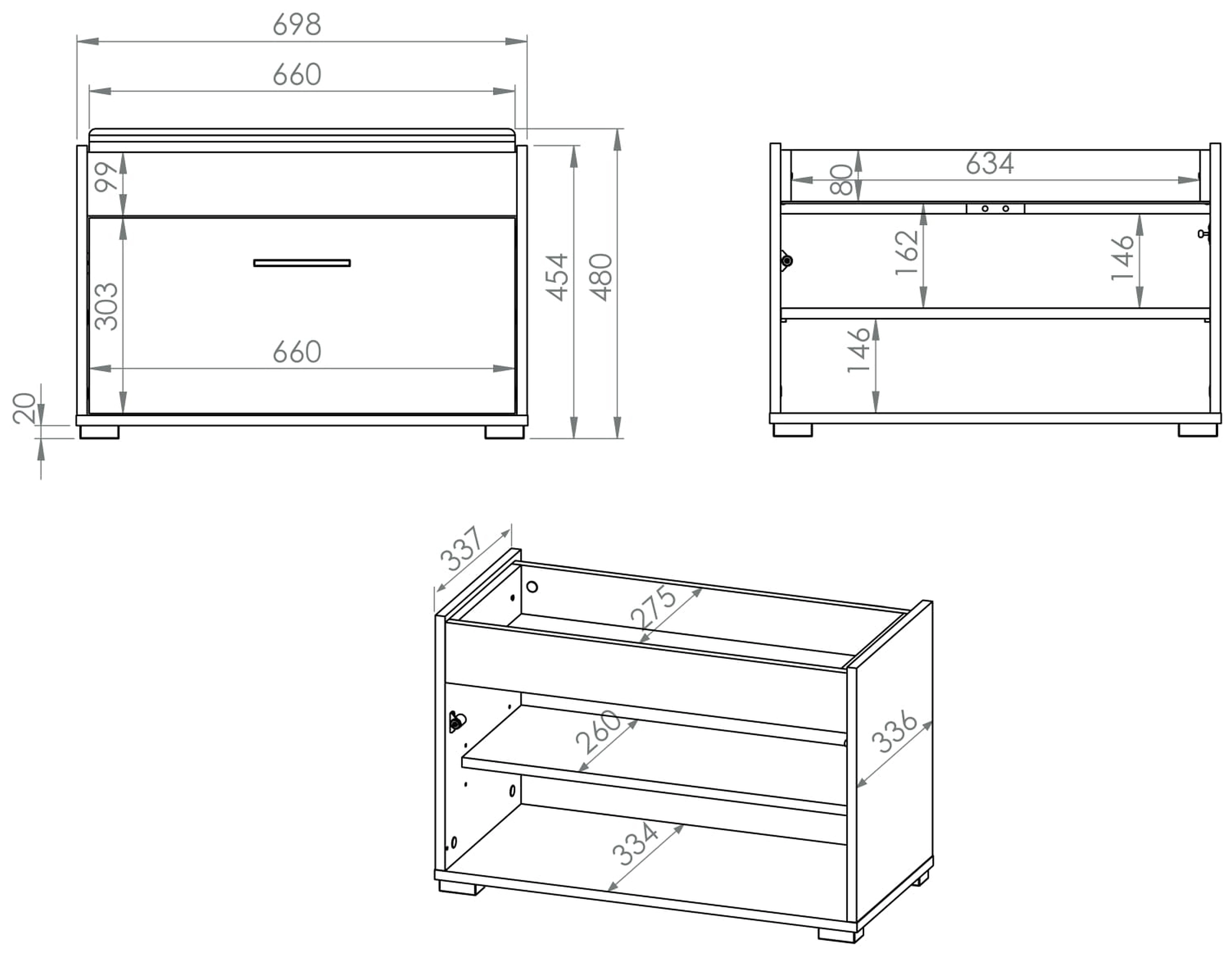 Mała szafka na buty z tapicerowanym siedziskiem 70 cm CARO