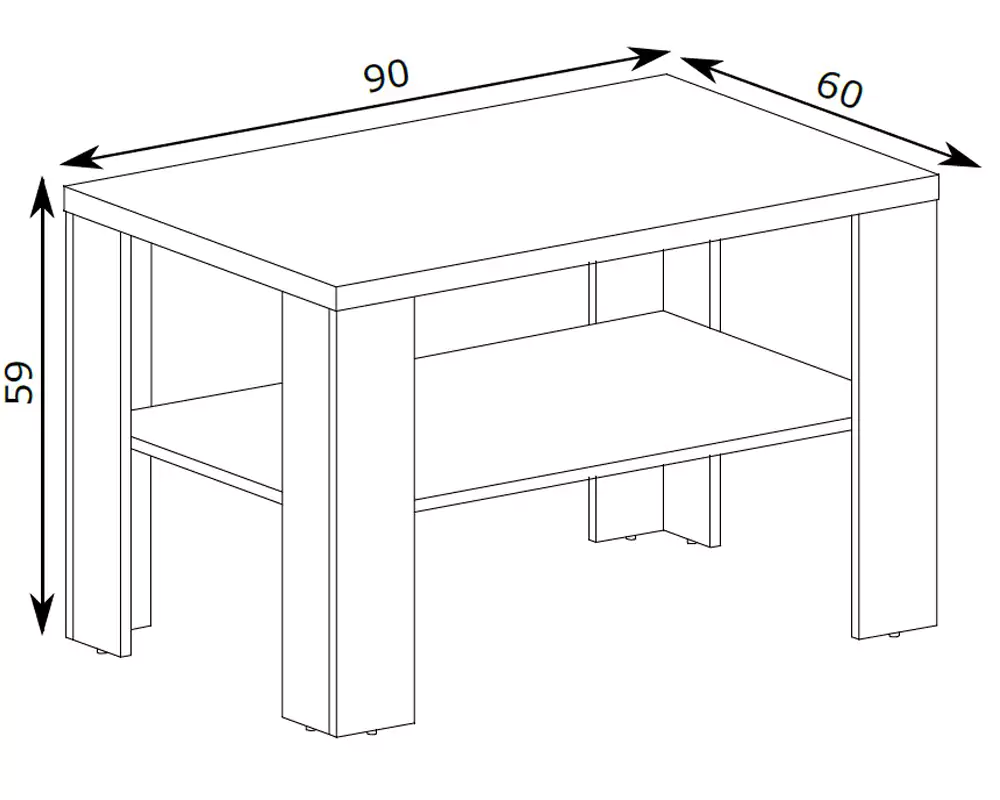 Stolik kawowy ADRE posiada blat o powierzchni 90 x 60 cm, na którym z powodzeniem umieścić swoją herbatę oraz ulubione wypieki. Dodatkowo stolik posiada półkę u dołu, która doskonale sprawdza się do umiejscowienia czasopisma lub pilota od telewizora.