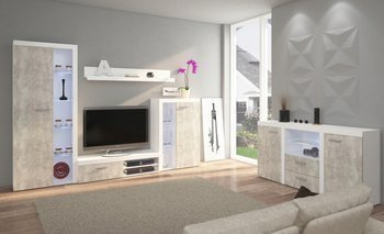 Bardzo ładne meble. Warto dodać do kompletu oświetlenie LED. Polecam zestaw z 5 elementów w tej samej cenie do tej trzy (komplet z półką i szafka RTV).