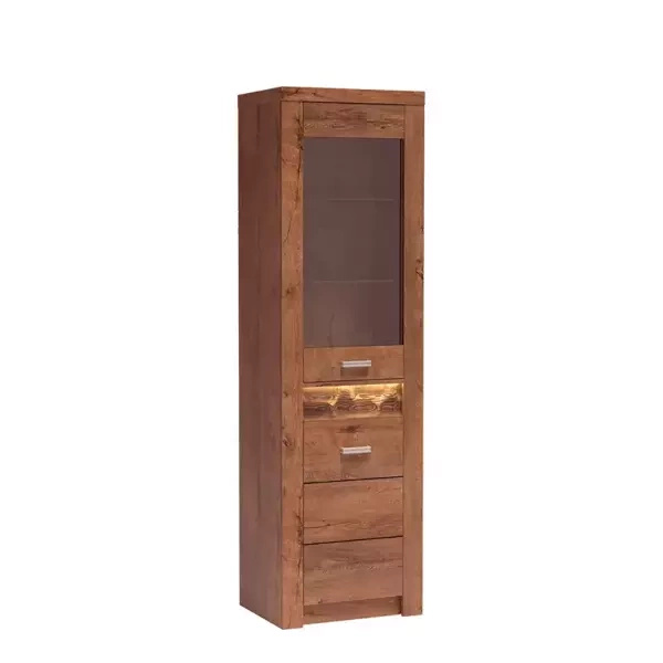 - Witryny w której znajdują się trzy półki z płyty laminowanej oraz jedna półka szklana, którą można podświetlić dostępnym na Naszych aukcjach oświetleniem, szer. 50 cm, wys. 200 cm, gł. 40 cm