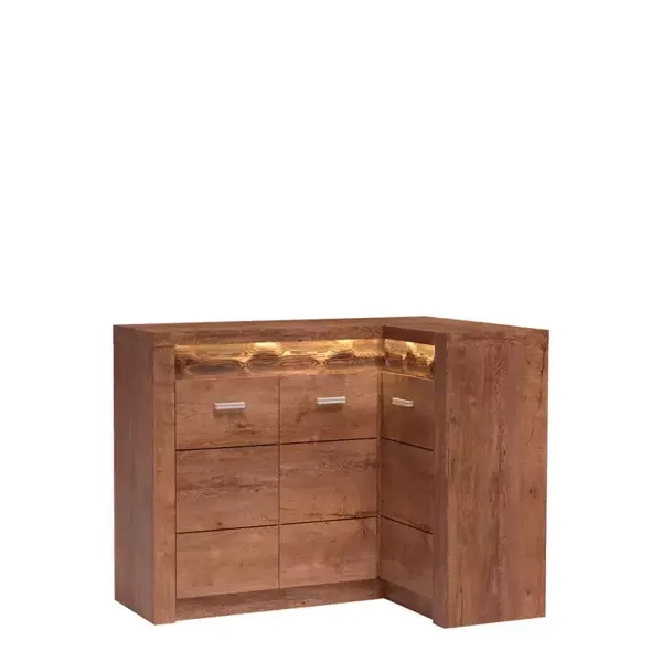 Górne blaty oraz boki wykonane są z płyty laminowanej o grubości 22 mm, natomiast półki i fronty z płyty o grubości 16 mm