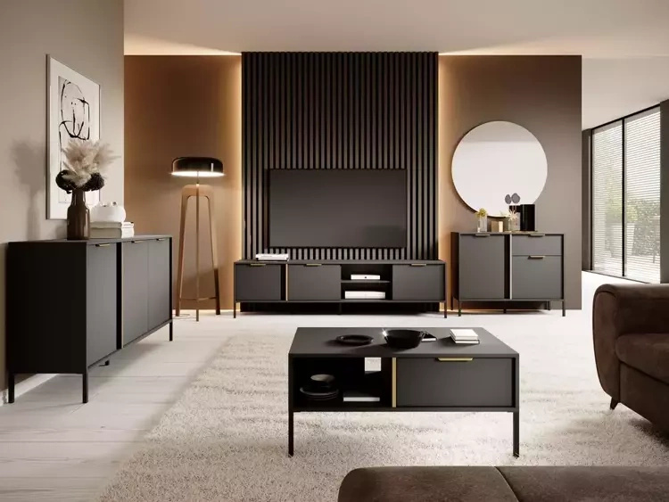 Szukasz meblościanki do nowoczesnego salonu, ale nie chcesz rezygnować z przytulnego klimatu? BRAVIN z wstawką w kolorze dąb wotan będzie idealnym wyborem – zarówno dekoracyjnym, jak i praktycznym. Sprawdzi się doskonale także w przestrzeniach inspirowanych stylem skandynawskim czy japandi.