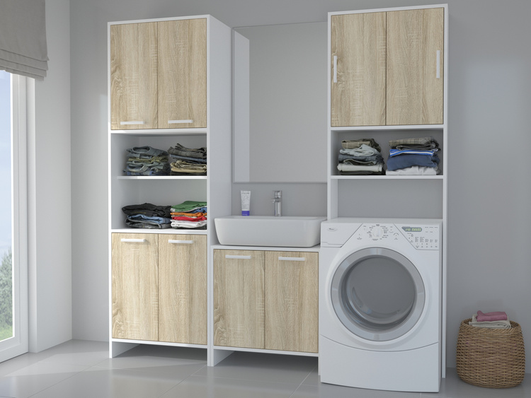 - Fronty są ryflowane w kolorze dąb artisan wykonane z płyty MDF o grubości 18 mm.