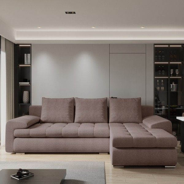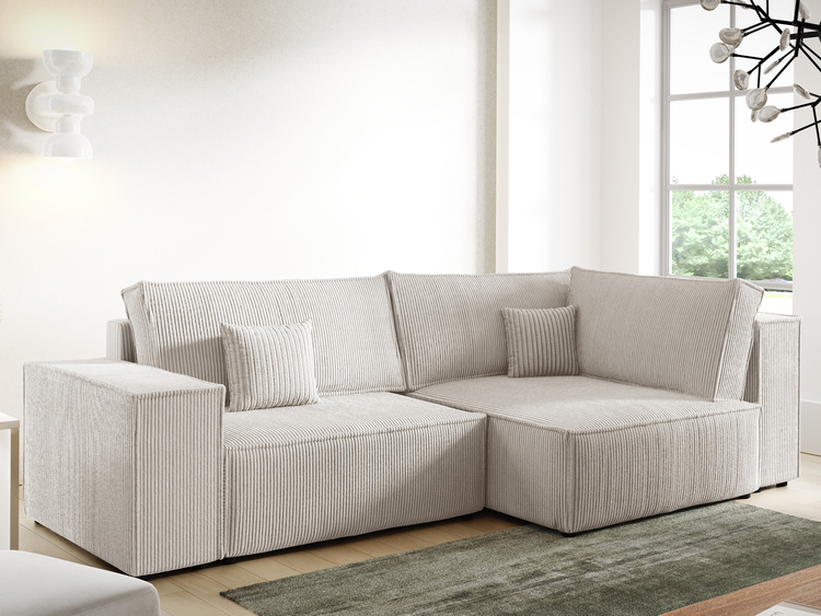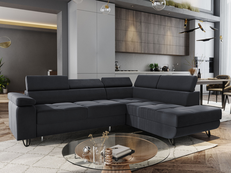 Sofę narożną można dostosować do lewo- lub prawostronnej konfiguracji, co umożliwia idealne dopasowanie do kształtu i wymiarów pomieszczenia. Uniwersalność i adaptacyjność w jednym.