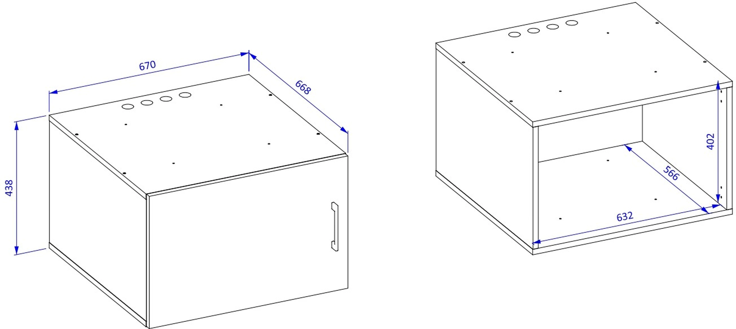 - Wymiary zewnętrzne: szerokość 67 cm, wysokość 43,8 cm, głębokość 66,8 cm