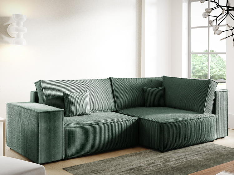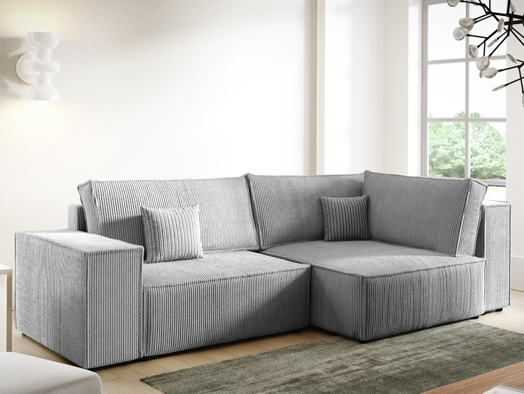 • Narożnik posiada tapicerowane plecy w tej samej tkaninie co reszta mebla, oznacza to, że można ustawić mebel nawet pośrodku salonu.