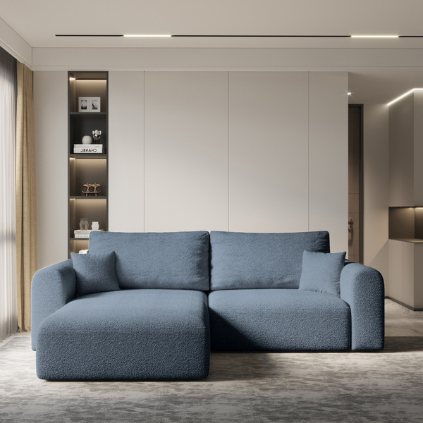 Narożnik uzupełniają dwie małe poduszki. Są one nie tylko praktycznym dodatkiem, ale także stanowią stylowe akcenty, które dodają całości wyjątkowego charakteru. Ich delikatna tekstura i wyrafinowany design idealnie komponują się z całością, tworząc harmonijną i przytulną przestrzeń.