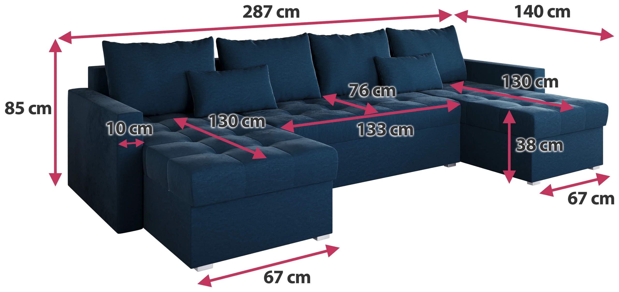 Zaprezentuj swojemu salonowi nowy wymiar funkcjonalności dzięki nowoczesnemu narożnikowi U-kształtnemuHOT. Idealnie wpasuje się w przestrzeń większych salonów, zapewniając komfortowe miejsce do odpoczynku dla całej rodziny. Dziękifunkcji spania o wymiarach 120x267 cm, narożnik ten łatwo przekształci się w wygodne łóżko, idealne do codziennego użytku lub jako dodatkowe miejsce do spania dla gości.
