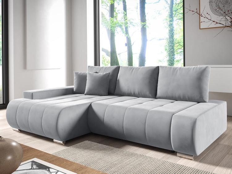 Sofę narożną można dostosować do lewo- lub prawostronnej konfiguracji, co umożliwia idealne dopasowanie do kształtu i wymiarów pomieszczenia. Uniwersalność i adaptacyjność w jednym.