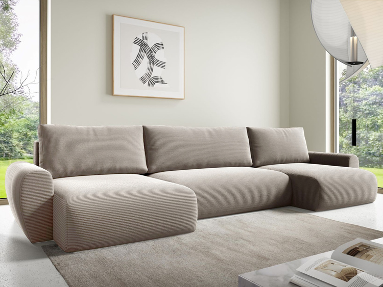 Sztruksowa tkanina zachwyca nie tylko wyglądem, ale też fakturą – miękka i ciepła, tworzy przytulną atmosferę w każdym wnętrzu. Praktyczny pojemnik na pościel pozwala łatwo utrzymać porządek, a prosta forma narożnika sprawia, że pasuje zarówno do wnętrz nowoczesnych, jak i klasycznych.