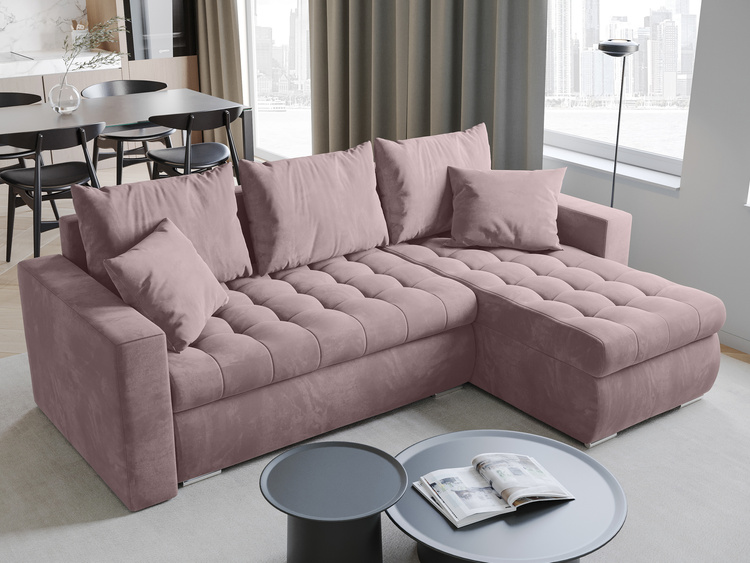 - Narożnik wolnostojący - Plecy narożnika zostały wykonane w takiej samej tkaninie jak reszta mebla, dzięki czemu narożnik może stanąć nawet pośrodku salonu.