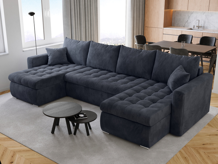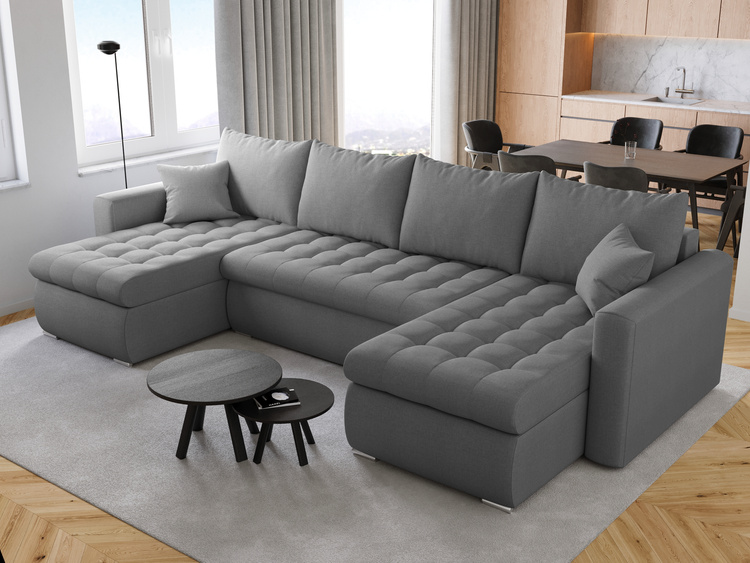 Zmień swój salon w komfortową strefę wypoczynku dzięki narożnikowi w kształcie litery U, który łączy stylowy wygląd z funkcjonalnością. To idealny wybór dla dużych rodzin, gościnnych gospodarzy i wszystkich, którzy cenią przestrzeń, wygodę i nowoczesne rozwiązania w jednym meblu.