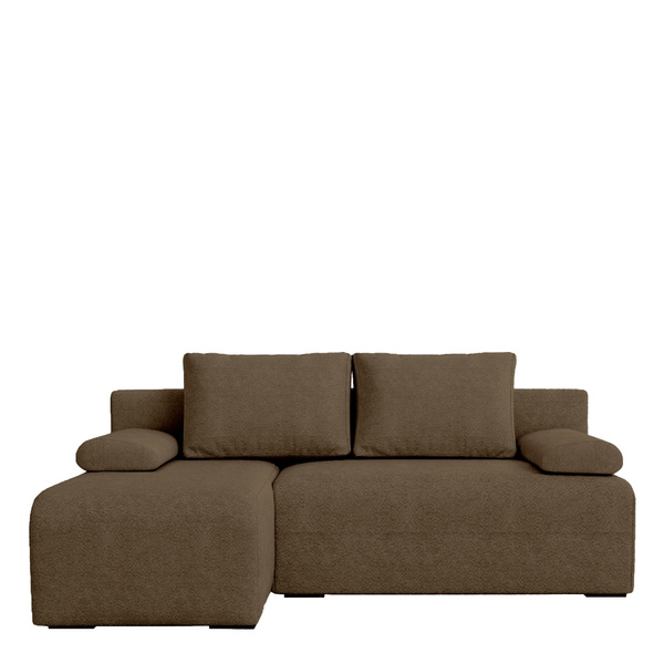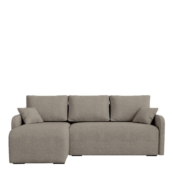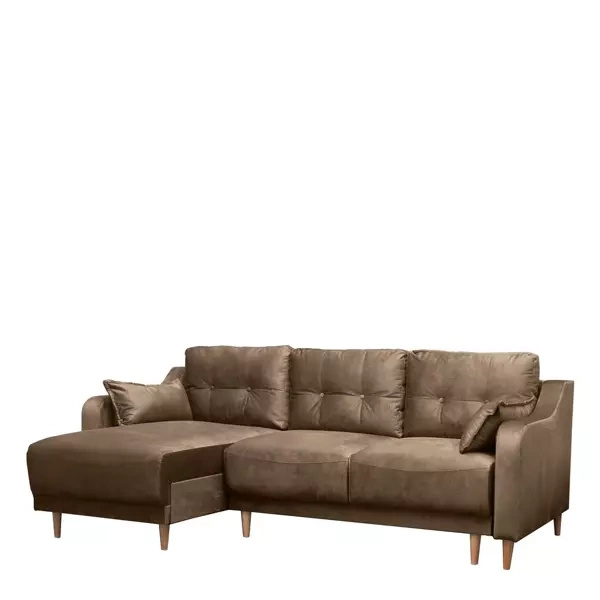 Dzięki mechanizmowi rozkładania DL narożnik z łatwością przekształca się w przestronne łóżko o wymiarach 130x245 cm, oferując wygodne miejsce do spania dla gości. Wbudowany pojemnik na pościel pod siedziskiem pozwala na szybkie i dyskretne przechowywanie kołder i poduszek, utrzymując porządek w salonie.