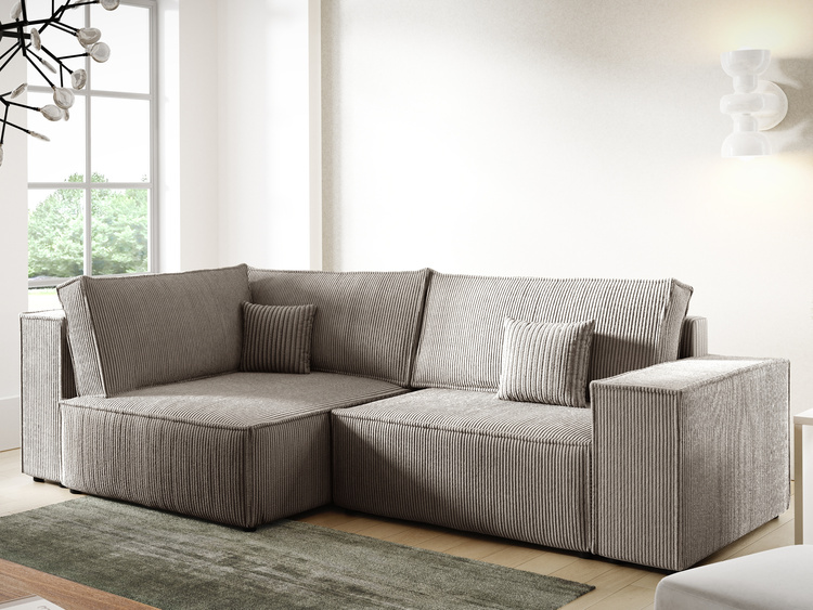 Sofę narożną można dostosować do lewo- lub prawostronnej konfiguracji, co umożliwia idealne dopasowanie do kształtu i wymiarów pomieszczenia. Uniwersalność i adaptacyjność w jednym.