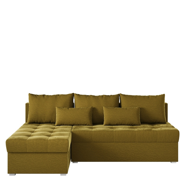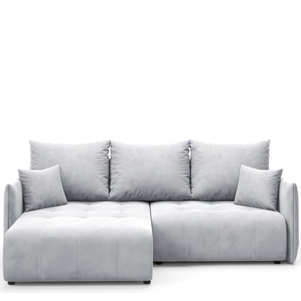 • Uniwersalna konstrukcja umożliwia montaż narożnika zarówno w wersji lewo-, jak i prawostronnej. Stronę, na której umieszczona jest otomana, można wybrać podczas składania mebla, co daje elastyczność dopasowania do pomieszczenia.