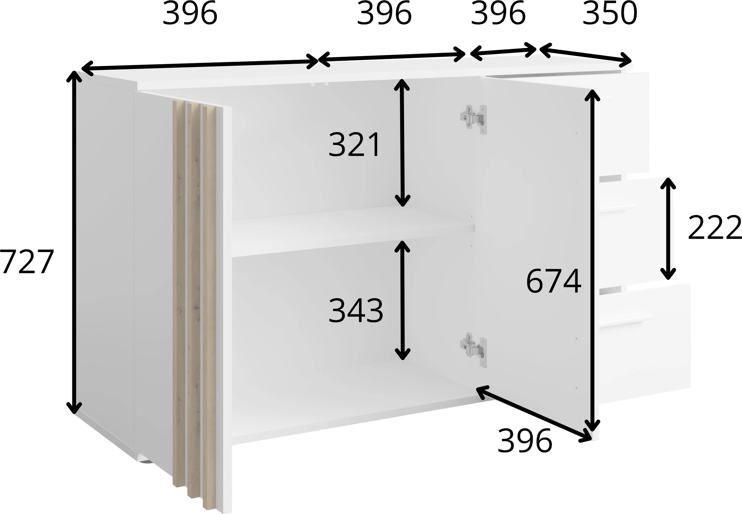 - Korpus: biały, płyta wiórowa laminowana 16 mm