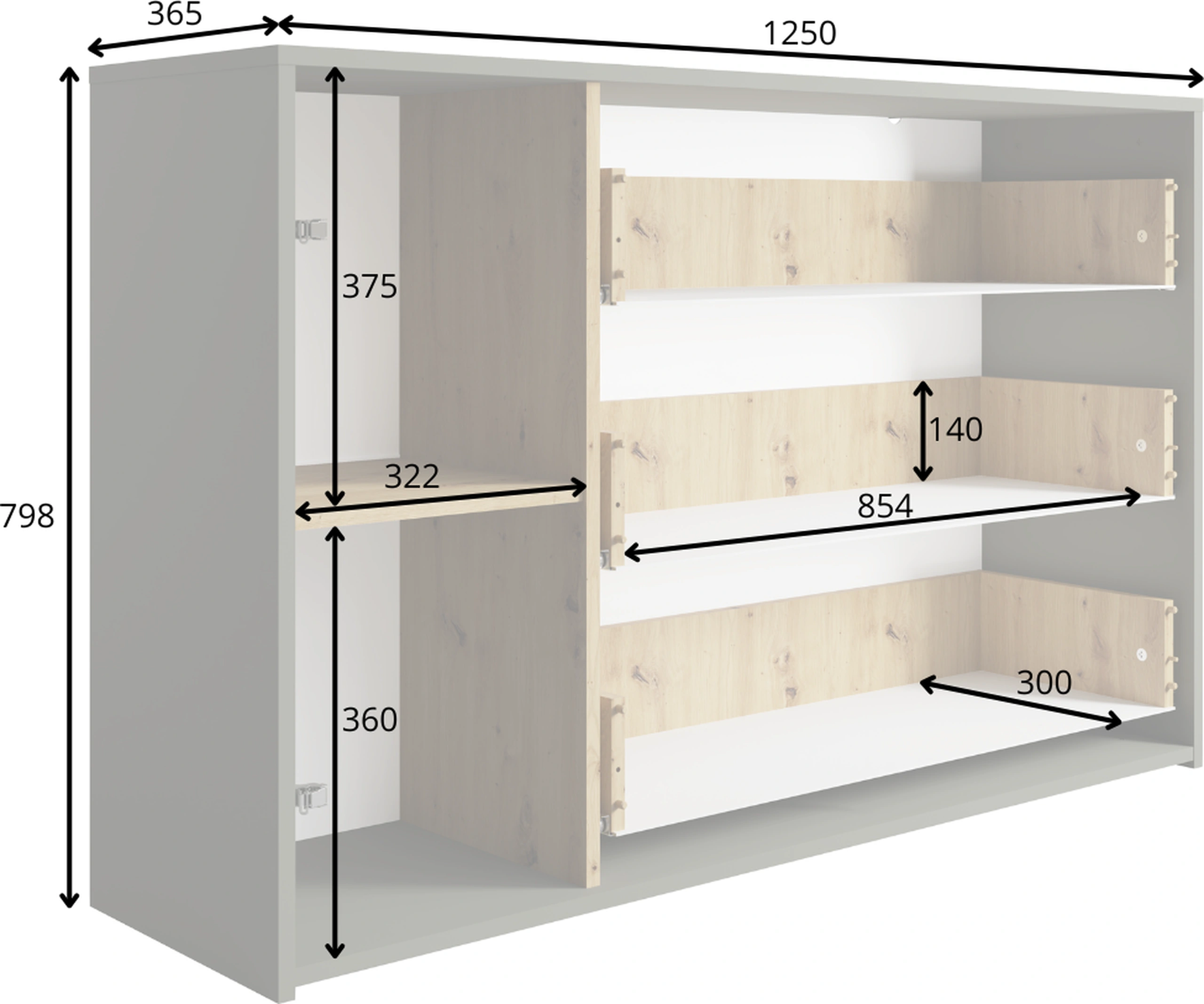 - Wymiary: szerokość 125 cm, wysokość 80 cm, głębokość 36,5 cm