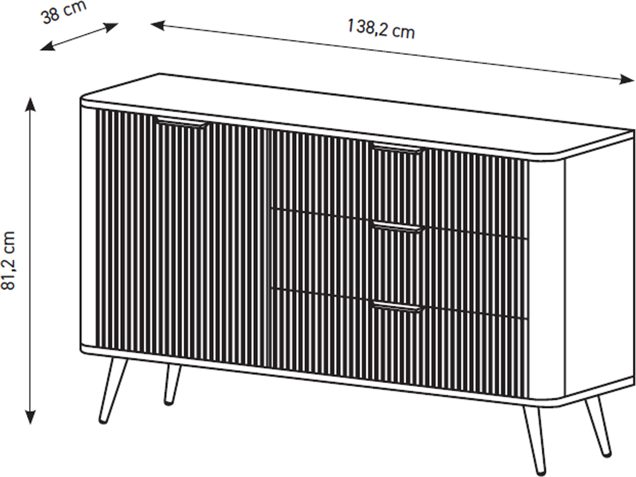 - Wymiary: szerokość 138 cm, wysokość 81 cm, głębokość 38 cm
