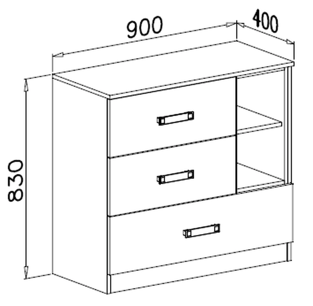 Komoda z kolekcji nowoczesnych mebli systemowych OCON. Komoda została wyposażona w trzy szuflady oraz otwartą przestrzeń, w której umiejscowiono półkę. Dzięki trzem dostępnym wariantom kolorystycznym dostosujesz komodę do aranżacji w twoim pokoju.