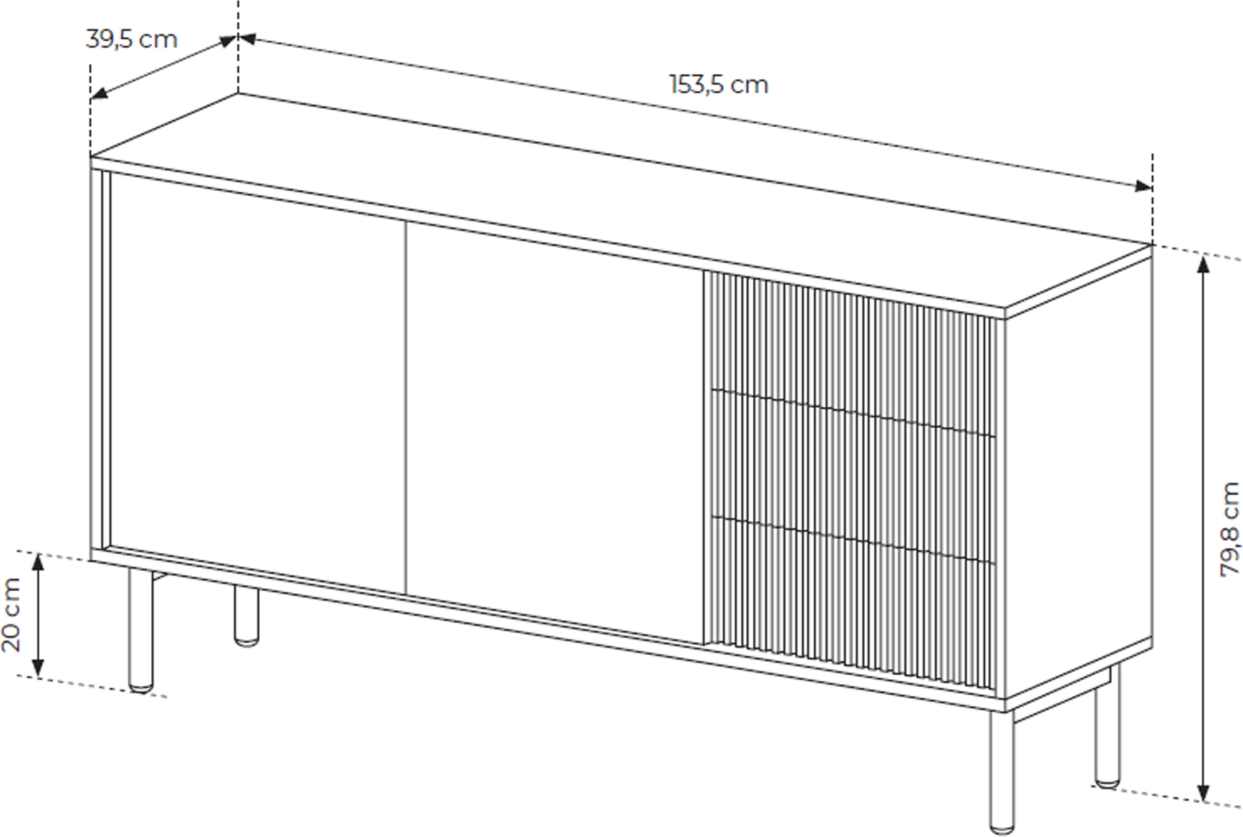 Dzięki wymiarom 153,5x80x39,5 cm TAMORIS zmieści się nawet w mniejszych przestrzeniach, oferując przy tym pojemność typową dla większych mebli. To idealna propozycja dla tych, którzy szukają stylowego, ale praktycznego rozwiązania do przechowywania.