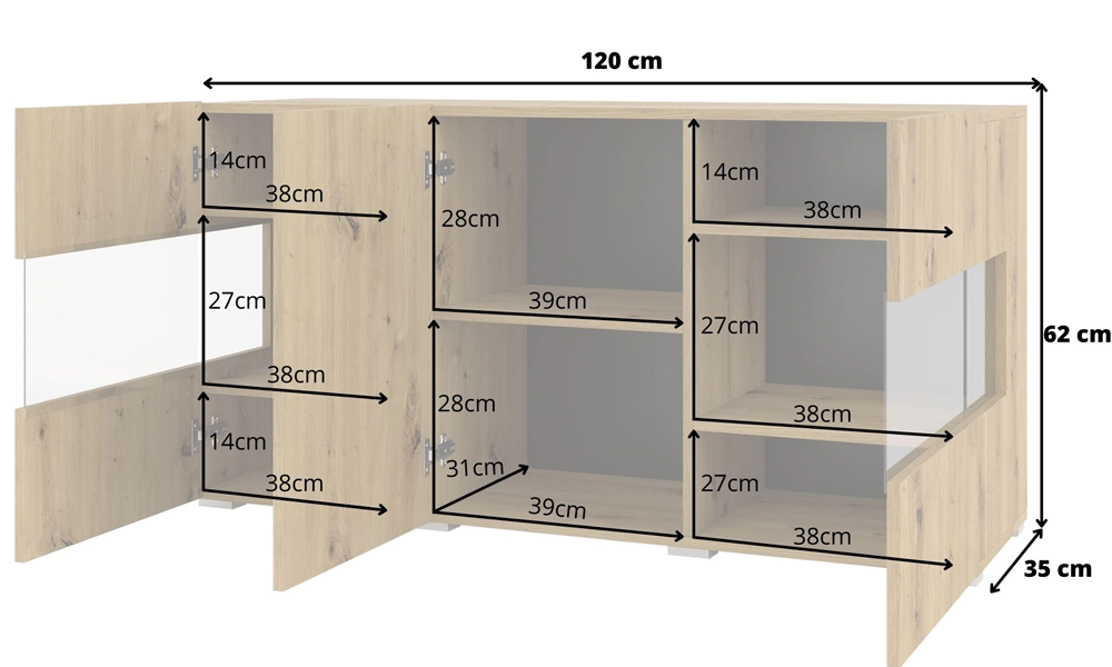 Komoda AVENTELI została wykonana w nowoczesnej oraz niebanalnej stylistyce, dzięki której uczyni twoje pomieszczenie ponadczasowym oraz wyjątkowym. Komoda posiada troje drzwi, które skrywają za sobą liczne poziomy pozwalające na przechowanie akcesoriów oraz półki, na których doskonale odnajdą się dekory, pozwalające nadać pomieszczeniu niepowtarzalnych akcentów stylistycznych. Dodatkowo komoda dzięki swojej konstrukcji posiada możliwość montażu w postaci wiszącej oraz stojącej, o której zdecydujesz podczas montażu.