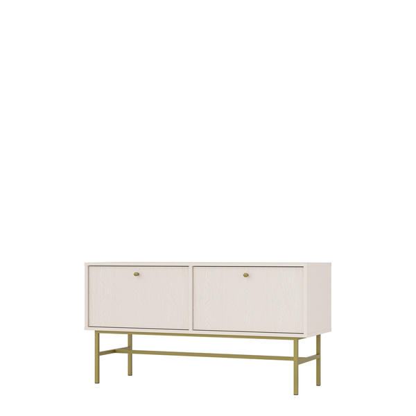 Komoda została wyposażona w eleganckie, metalowe nóżki o wysokości 15 cm, które nadają jej nowoczesny wygląd i ułatwiają utrzymanie czystości pod meblem. Metalowe uchwyty dopełniają całości, dodając stylu i funkcjonalności.