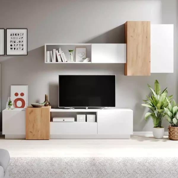 Meble do salonu SAMBA BIG są wykonywane z najwyższej jakości materiałów, charakteryzujących się dużą odpornością na uszkodzenia mechaniczne. Zestaw utrzymany jest w nowoczesnej stylistyce i z pewnością przypadnie do gustu miłośnikom funkcjonalnej i prostej formy. Zestaw składa się z dwóch pojemnych witryn, które w środku mają 3 półki z płyty. Dwudrzwiowej szafki RTV z półeczką pośrodku oraz półki wiszącej, która pozwoli na zgromadzenie i zaprezentowanie kolekcji książek, zdjęć lub rodzinnych pamiątek. Meblościanki dostępne są w kilku modnych wersjach kolorystycznych, więc będą pasować do każdego wnętrza.
