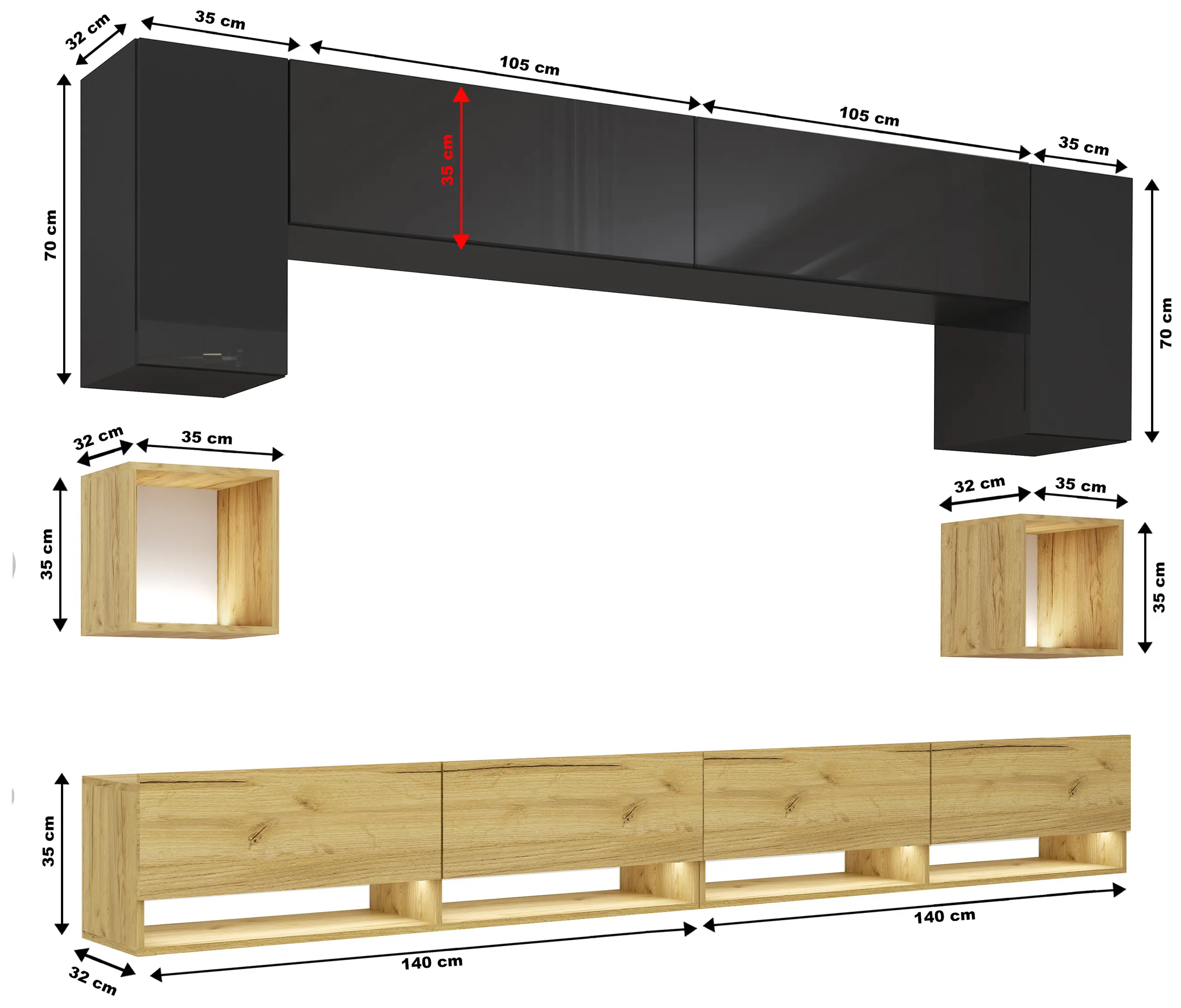 Wymiary elementów: