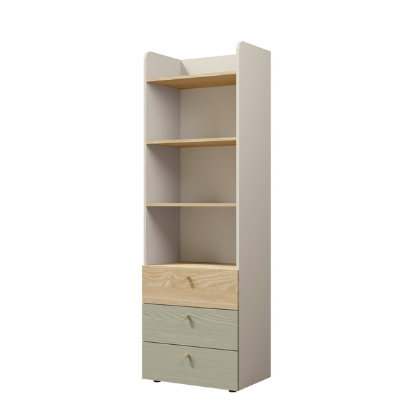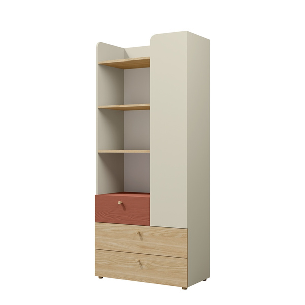 Z prawej strony szafy znajduje się drugie, równie funkcjonalne drzwi. Za nimi ukrywa się sześć równomiernie rozmieszczonych półek, które oferują mnóstwo miejsca na książki, gry, pamiątki oraz inne przedmioty, które młody człowiek chciałby mieć pod ręką.