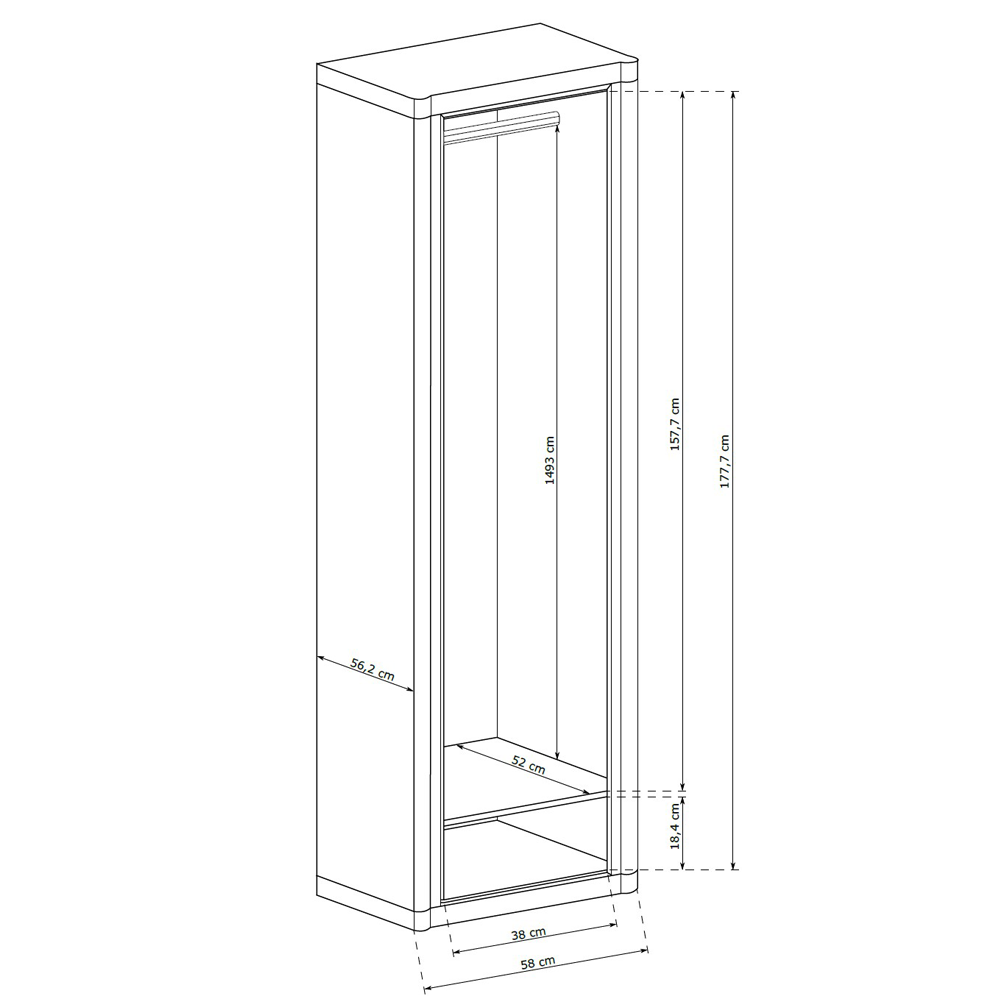 Szafa DENEA to nowocześnie wykonana propozycja, która dzięki swojej niebanalnej stylistyce w doskonały sposób odnajduje się we współczesnych aranżacjach salonów. Szafa została wyposażona w szufladę u dołu, nad którą znajduje się drążek na wieszaki wraz z półką. Szafa mimo swoich niewielkich rozmiarów jest bardzo pojemna i z pewnością pomieści część twojej garderoby.
