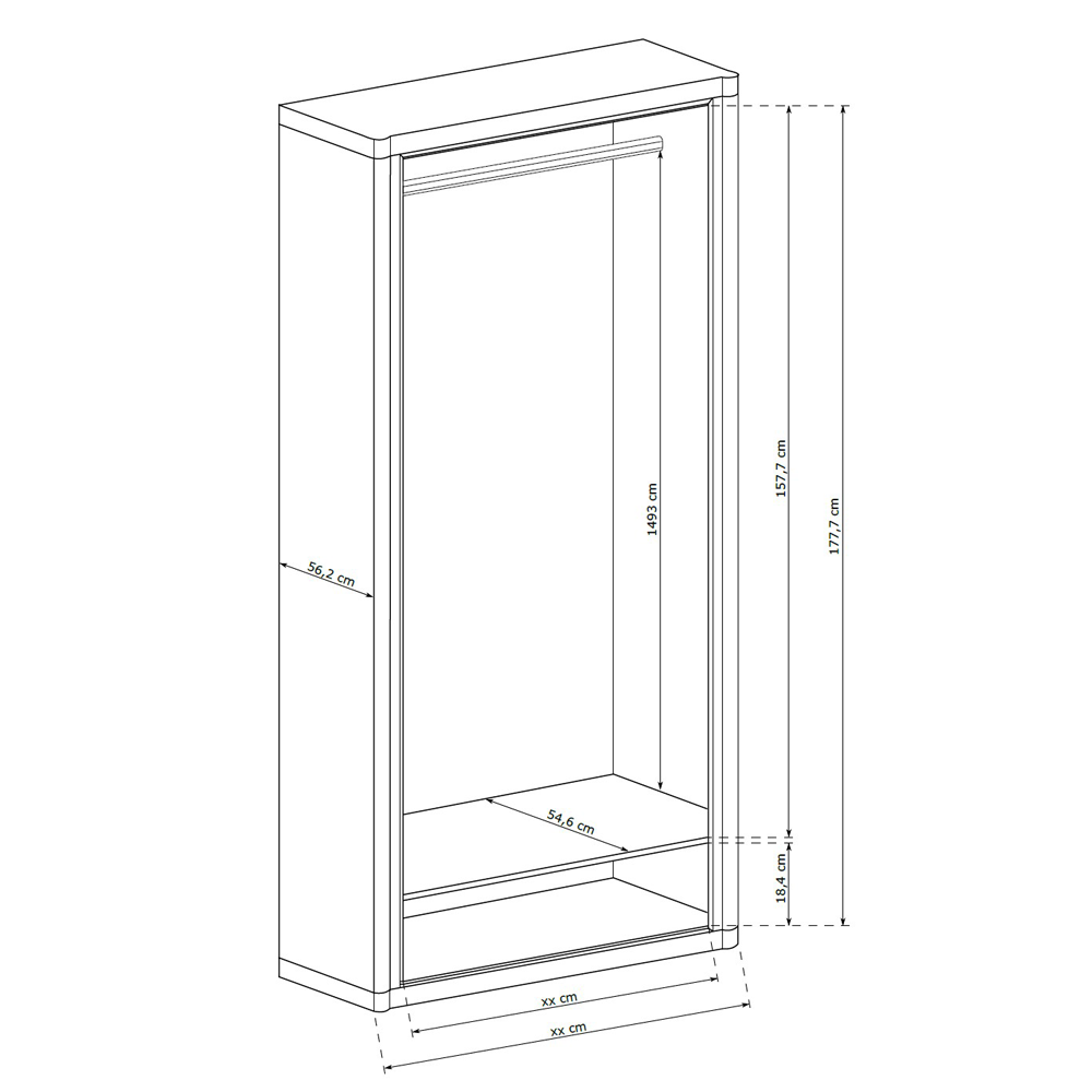 Szafa DENEA to nowocześnie wykonana propozycja, która dzięki swojej niebanalnej stylistyce w doskonały sposób odnajduje się we współczesnych aranżacjach salonów. Szafa została wyposażona w szufladę u dołu, nad którą znajduje się drążek na wieszaki wraz z półką. Szafa poprzez swoje przestronne wnętrze jest bardzo pojemna i z pewnością pozwoli ci przechować znaczną część twojej garderoby.