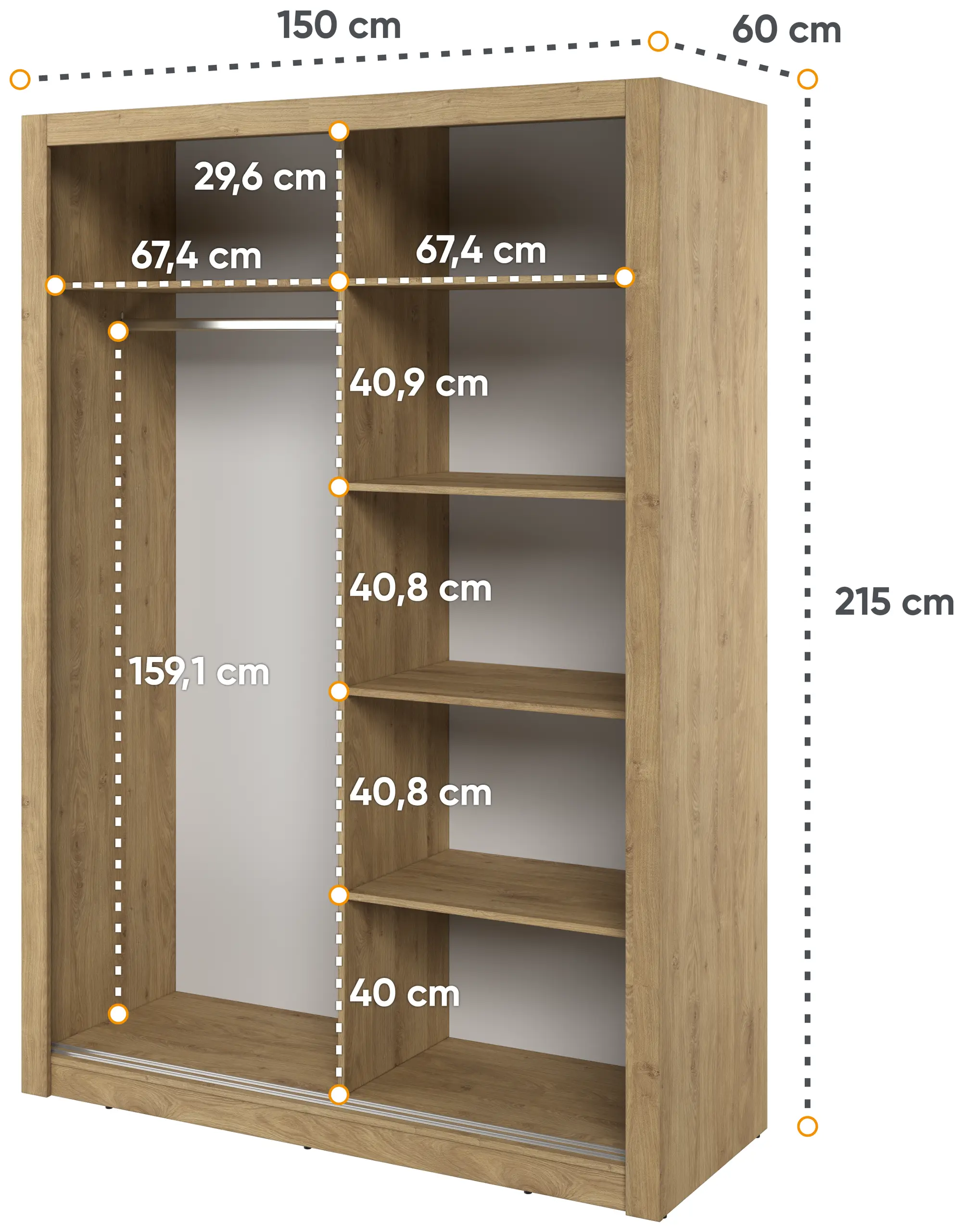 Nowoczesna szafa przesuwna z drążkiem i półkami 150 cm ARTI