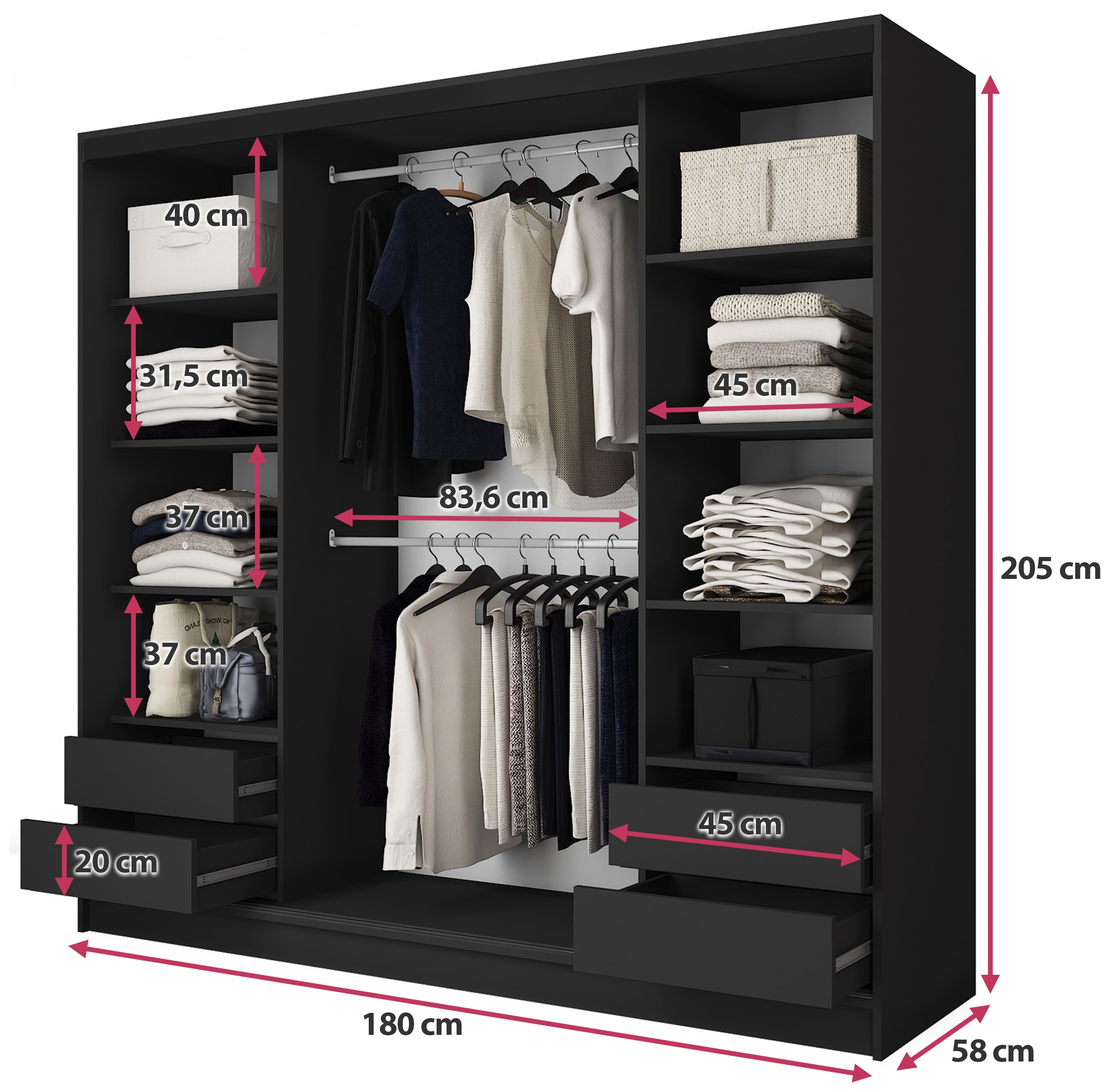 Nowoczesna szafa przesuwna z lustrem 180 cm BEST półki