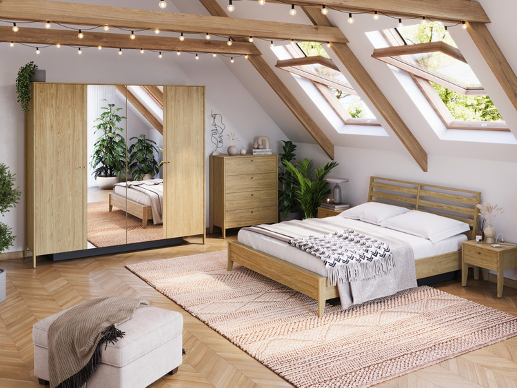 Szafa wyposażona jest w aluminiowe prowadnice drzwi, co zapewnia płynne i ciche przesuwanie się drzwi, nawet przy intensywnym użytkowaniu. Nowoczesna stylistyka szafy przesuwnej sprawia, że idealnie wpisuje się w różne aranżacje wnętrz, zarówno te minimalistyczne, jak i te bardziej zindywidualizowane.