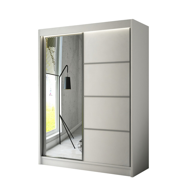 Przedstawiamy szafę przesuwną z lustrem OLAS – doskonałe połączenie elegancji i funkcjonalności. Ta dwudrzwiowa szafa, z lustrem umieszczonym na jednym z drzwi, wprowadzi do Twojego wnętrza nowoczesny styl i optycznie powiększy przestrzeń.