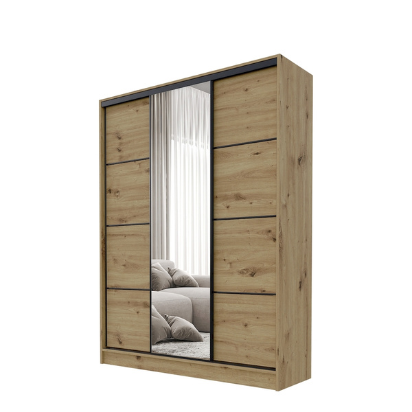 Dzięki wysokości aż 235 cm szafa oferuje wyjątkowo dużo miejsca, bez kompromisów w zakresie funkcjonalności. Dobrze rozplanowane wnętrze pozwala na logiczne uporządkowanie garderoby – od bielizny po płaszcze. Dwa aluminiowe drążki umożliwiają wygodne zawieszenie odzieży, chroniąc ją przed zagnieceniami.