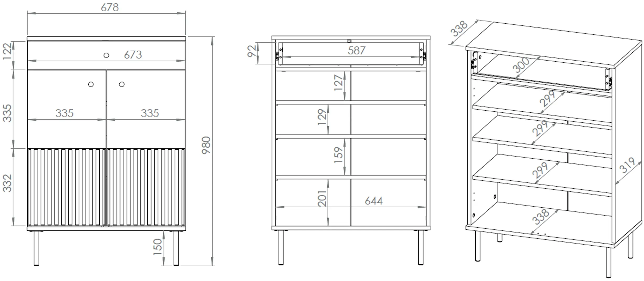✅ Dwoje drzwi i cztery zamknięte półki – perfekcyjny porządek i łatwy dostęp do butów