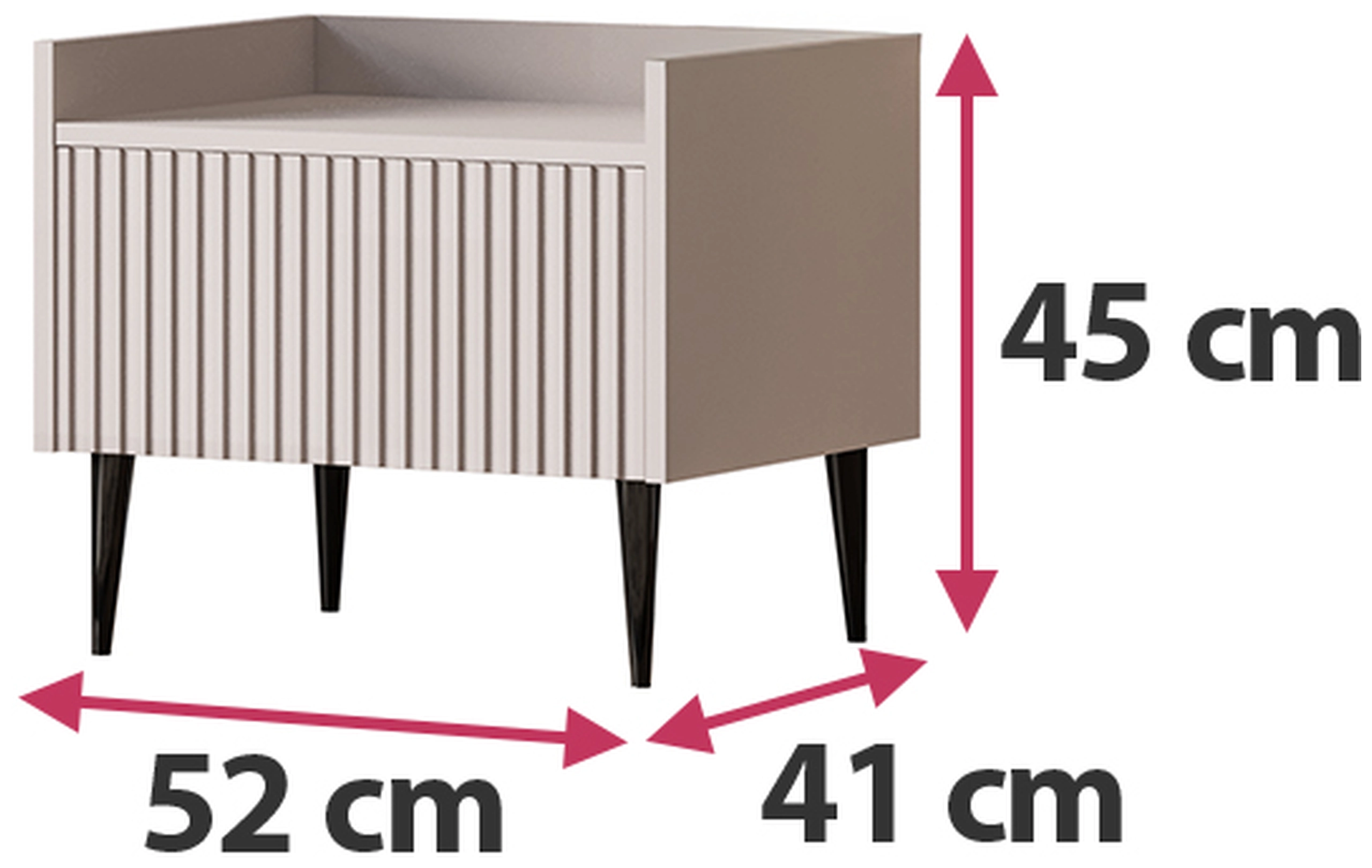 - Wysokie, czarne nóżki wykonane z metalu, nadają szafce nocnej lekkości i ułatwiają utrzymanie czystości.