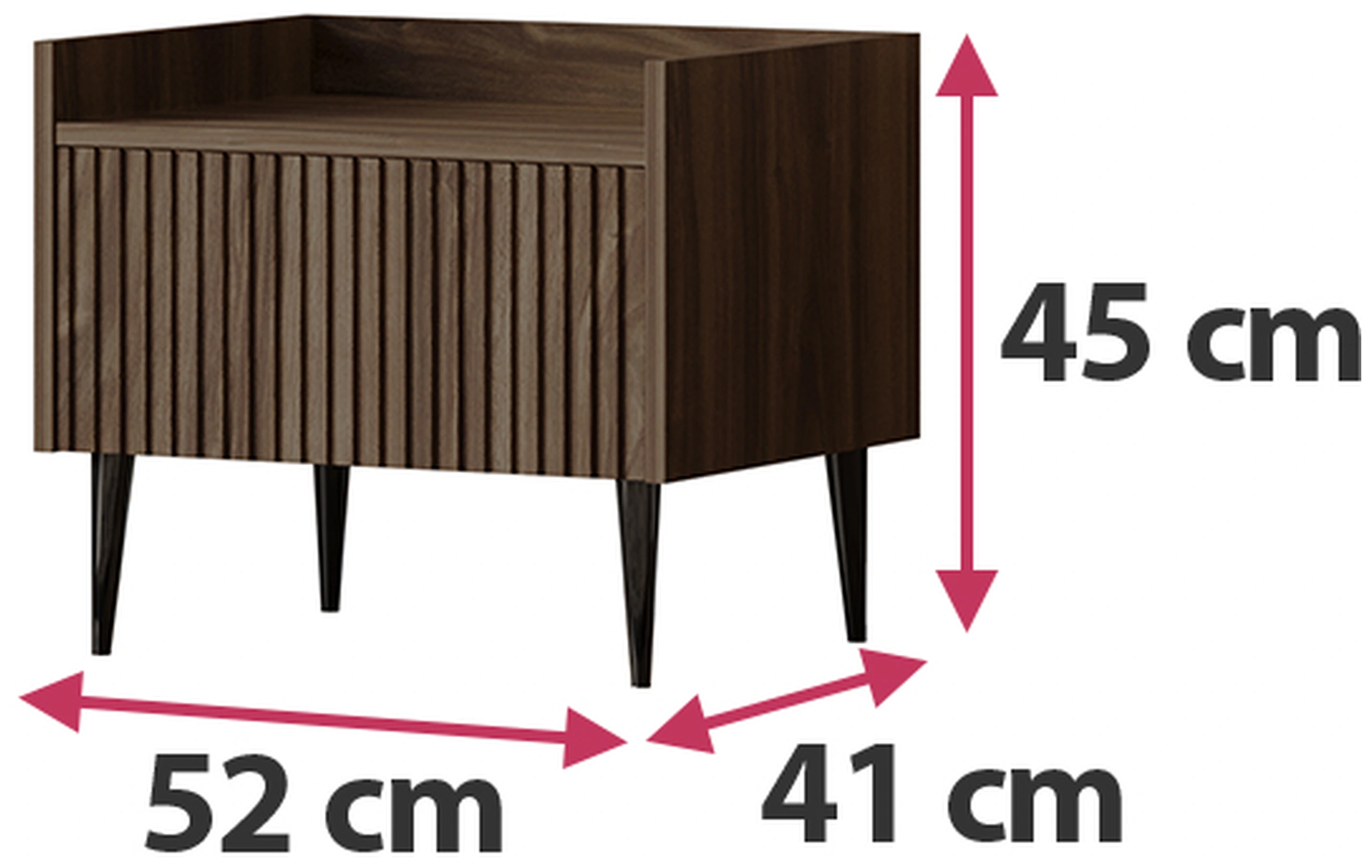 Nowoczesna szafka nocna ASPERO to propozycja, która wniesie do Twojej sypialni elegancję i funkcjonalność. Wykonana w delikatnym kolorze orzech, doskonale komponuje się z różnymi stylami wnętrz, wprowadzając do nich subtelny akcent. Wyposażona w uchylne drzwi otwierane za pomocą systemu push to open, oferuje wygodę użytkowania bez potrzeby stosowania uchwytów, co podkreśla minimalistyczny charakter mebla.