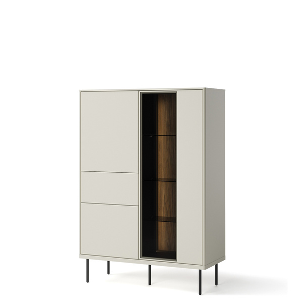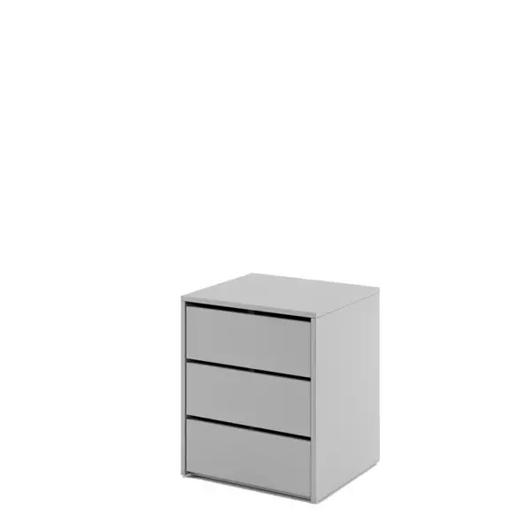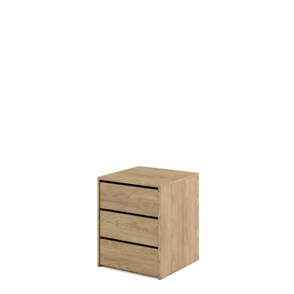 Szafka nocna składa się z trzech szuflad, która umieszczona jest na prowadnicach rolkowych, co zapewnia płynne i ciche otwieranie i zamykanie szuflady. Obrzeża szafki zostały zabezpieczone okleiną ABS, co zwiększa ich trwałość i odporność na uszkodzenia mechaniczne. Nowoczesna stylistyka szafki nocnej sprawia, że idealnie pasuje do wielu aranżacji wnętrz, zarówno tych minimalistycznych, jak i bardziej eleganckich.