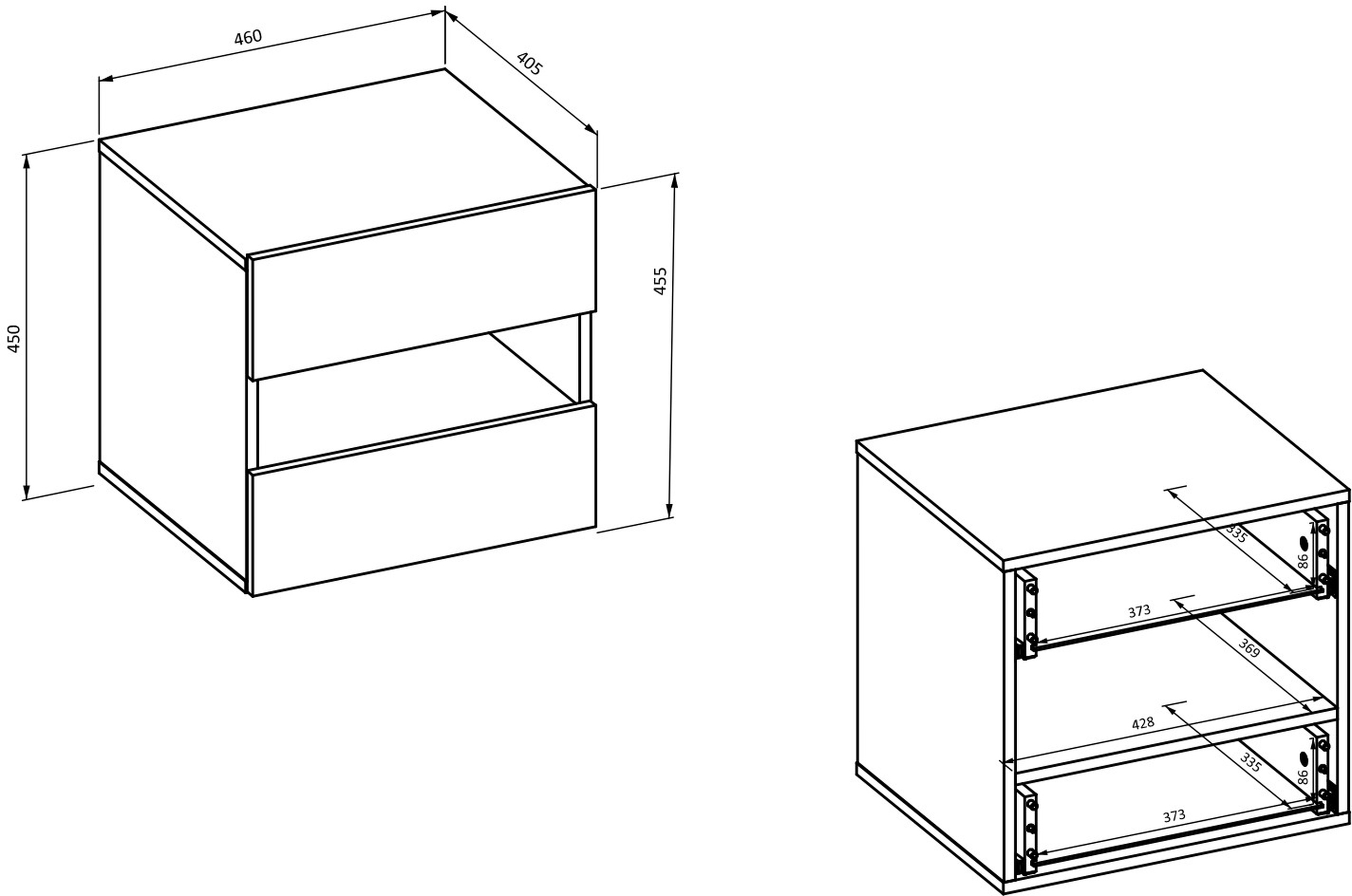 - Funkcjonalna forma – dwie szuflady i otwarta półka zapewniają wygodne przechowywanie najpotrzebniejszych rzeczy
