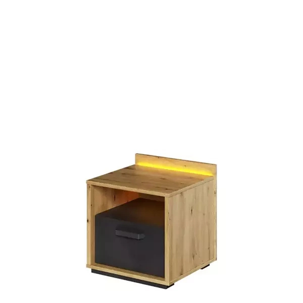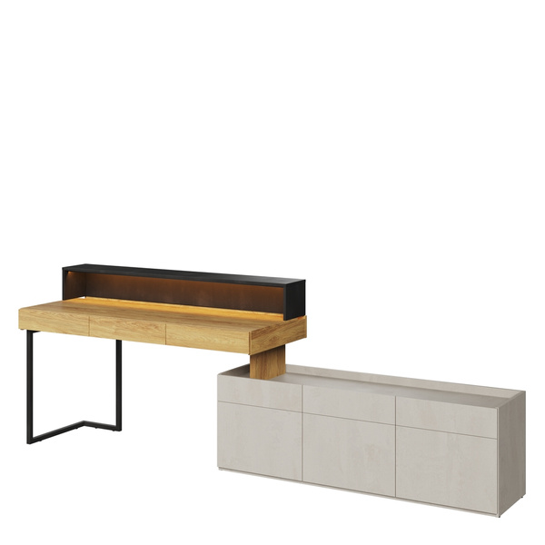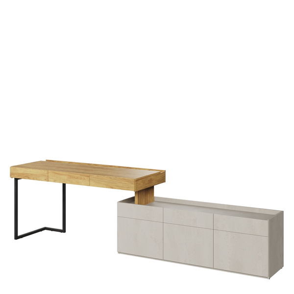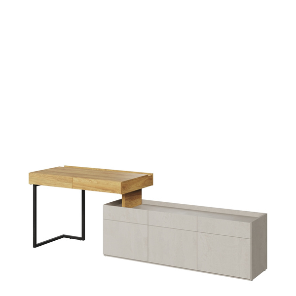 Fronty z lamelami dodają meblowi nowoczesnej, a zarazem ciepłej i przytulnej atmosfery. Nowoczesna szafka RTV wyposażona jest w praktyczną szufladę na prowadnicy kulkowej, która zapewnia płynne i ciche otwieranie, a także długą żywotność, nawet przy częstym użytkowaniu. Zawiasy puszkowe zapewniają bezproblemowe otwieranie i zamykanie frontów, gwarantując ich trwałość.