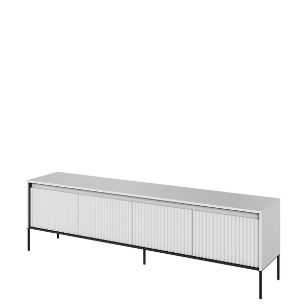 Nowoczesna szafka RTV na wysokich nóżkach PIEMONTE z lamelami to doskonałe połączenie stylu i funkcjonalności. Wykonana z trwałej i atrakcyjnej płyty laminowanej, szafka wytrzyma codzienną eksploatację, zachowując swoją elegancką estetykę.