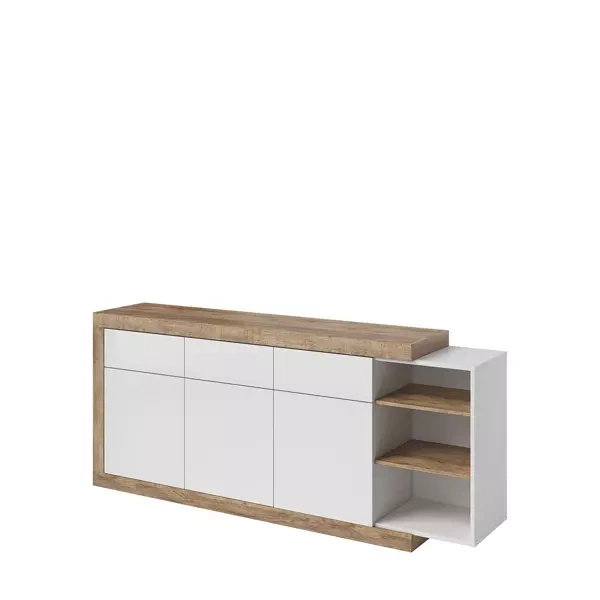 Fronty z lamelami dodają meblowi nowoczesnej, a zarazem ciepłej i przytulnej atmosfery. Nowoczesna szafka RTV wyposażona jest w praktyczną szufladę na prowadnicy kulkowej, która zapewnia płynne i ciche otwieranie, a także długą żywotność, nawet przy częstym użytkowaniu. Zawiasy puszkowe zapewniają bezproblemowe otwieranie i zamykanie frontów, gwarantując ich trwałość.