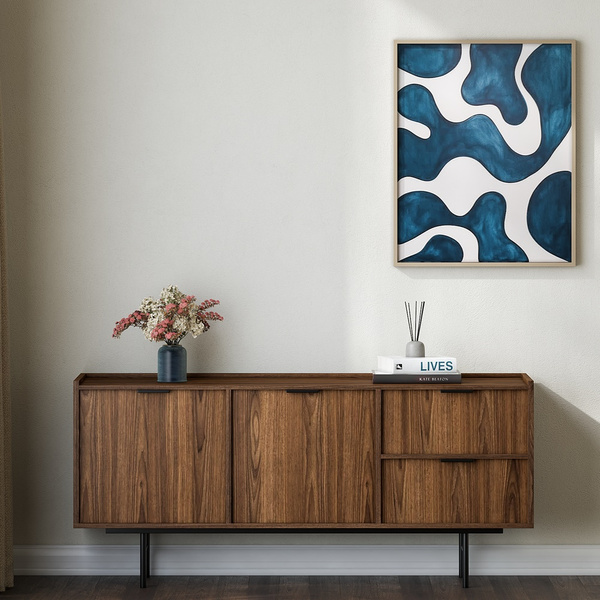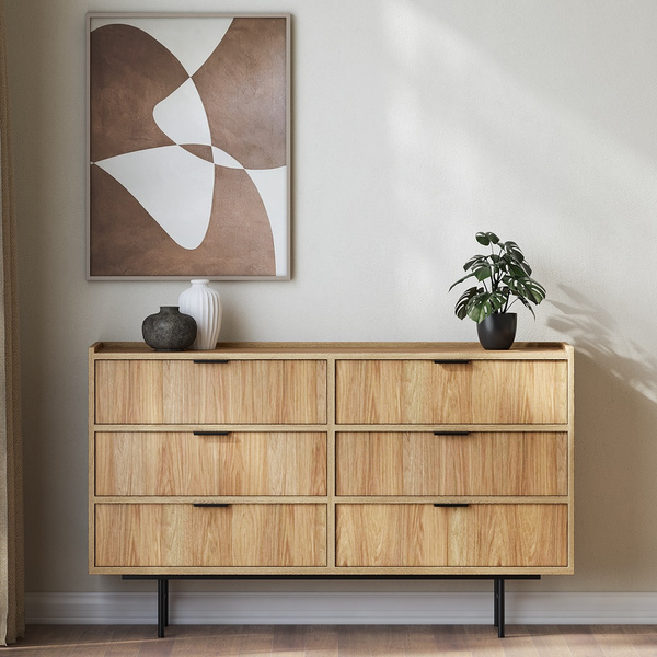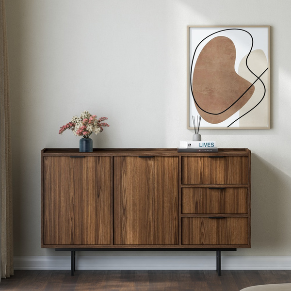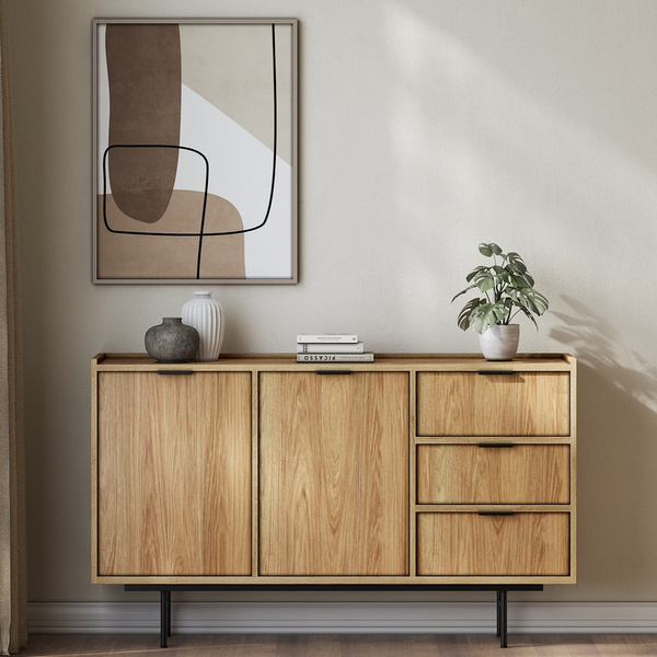 - Dwie otwarte wnęki, jedna nad i jedna pod szufladą, oferują dodatkowe miejsce na przechowywanie podręcznych przedmiotów, zapewniając łatwy dostęp i zwiększając funkcjonalność mebla.