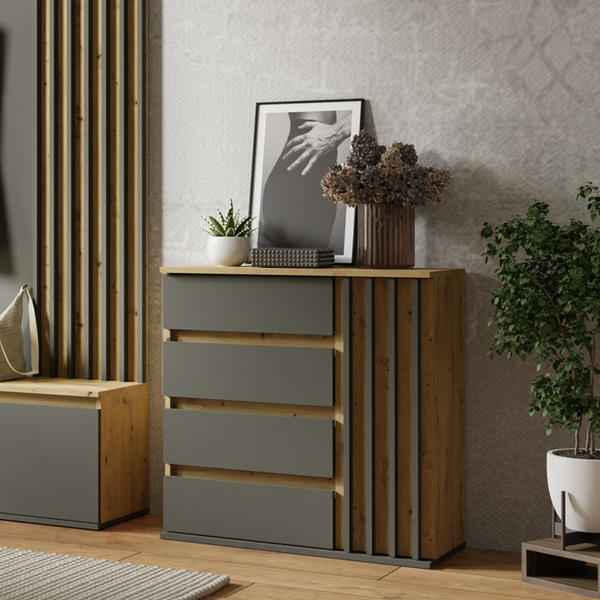 ✅ Frezowane fronty – stylowy detal, który podkreśla nowoczesny charakter mebla.