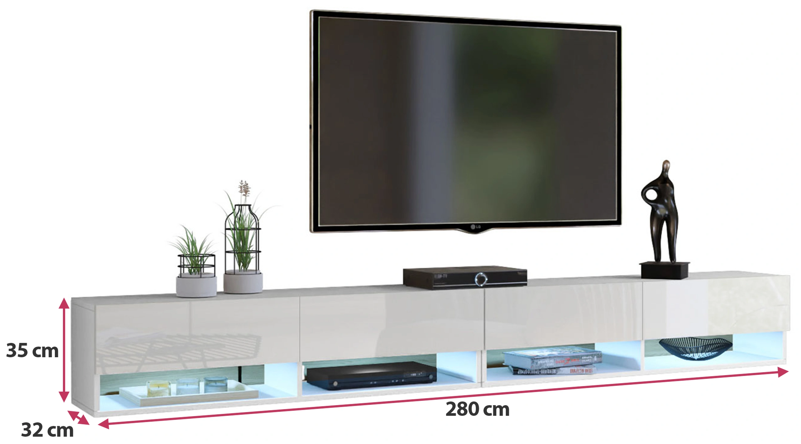 Szafki RTV białe połysk Dwie szafki pod telewizor o łącznej szerokości 280 cm Nowoczesne stoliki RTV 2X Q-140 BP