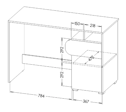 Biurko zostało zaprojektowane z myślą o maksymalnej funkcjonalności i komforcie użytkowania. Wyposażone w praktyczną szafkę z półką wewnątrz, oferuje dodatkową przestrzeń do przechowywania, pomagając utrzymać porządek w materiałach edukacyjnych i osobistych przedmiotach. Krawędzie zabezpieczone są obrzeżem PCV, co zwiększa bezpieczeństwo użytkowania, a nóżki wykonane z tworzywa sztucznego w kolorze grafitu dodają całości spójności i nowoczesnego charakteru. To biurko nie tylko ułatwi organizację pracy, ale również stanie się inspirującym elementem pokoju każdego młodego człowieka.
