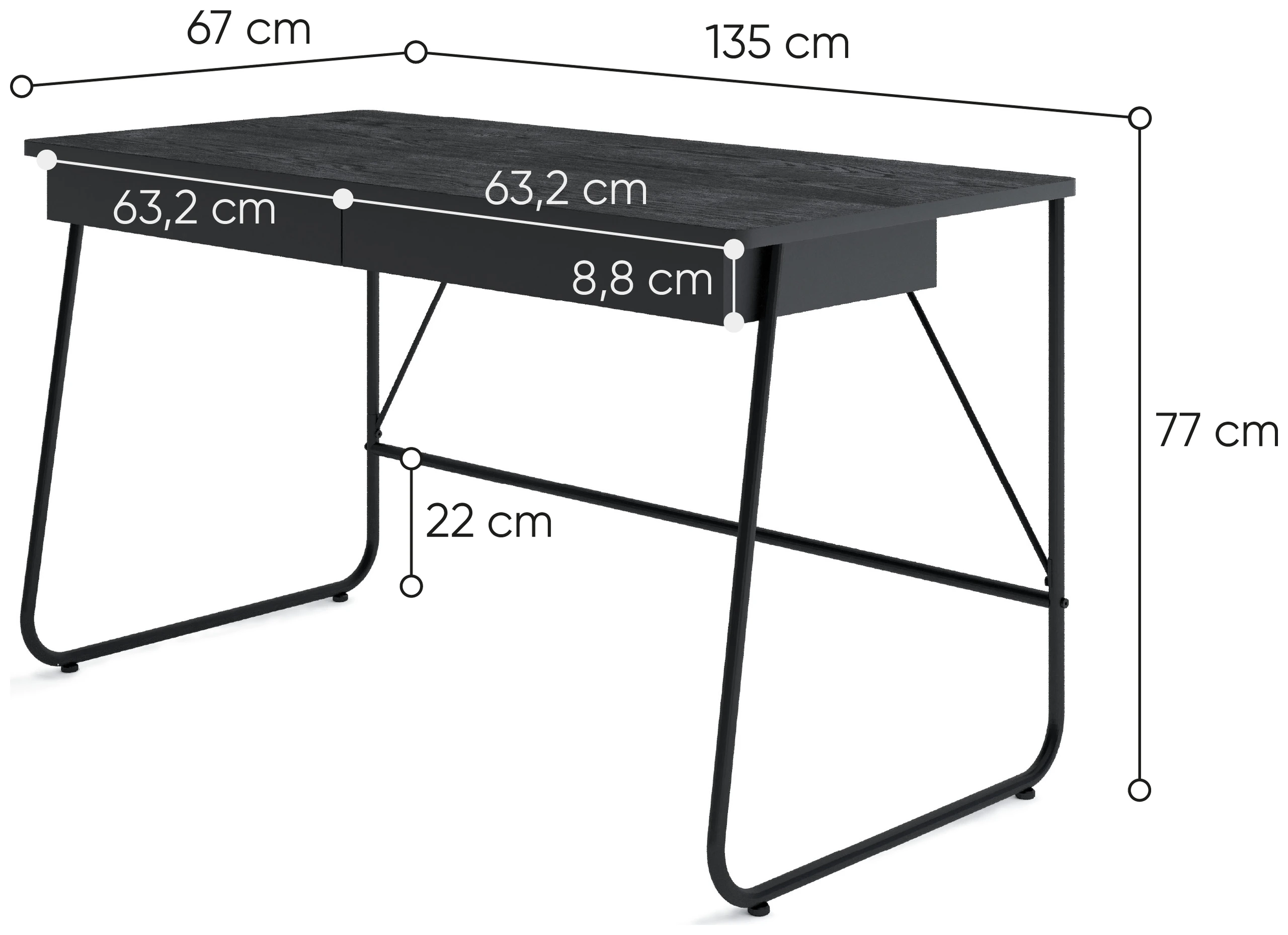 Nowoczesne czarne biurko z szufladami i metalowymi nogami 135x77 cm MATCH